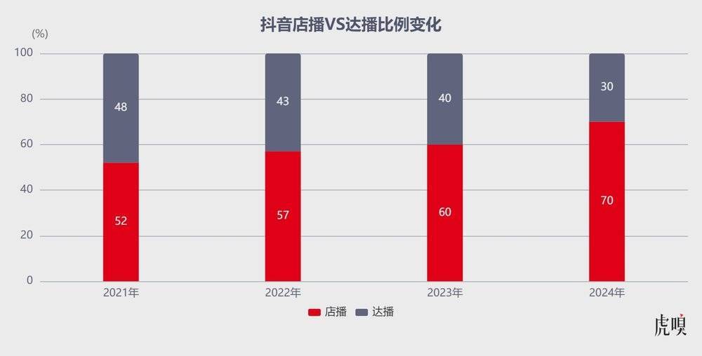 尤其 2024-2025 年,抖音电商从达播向店播过渡的趋势越发明显,虎嗅拿到数据显示: