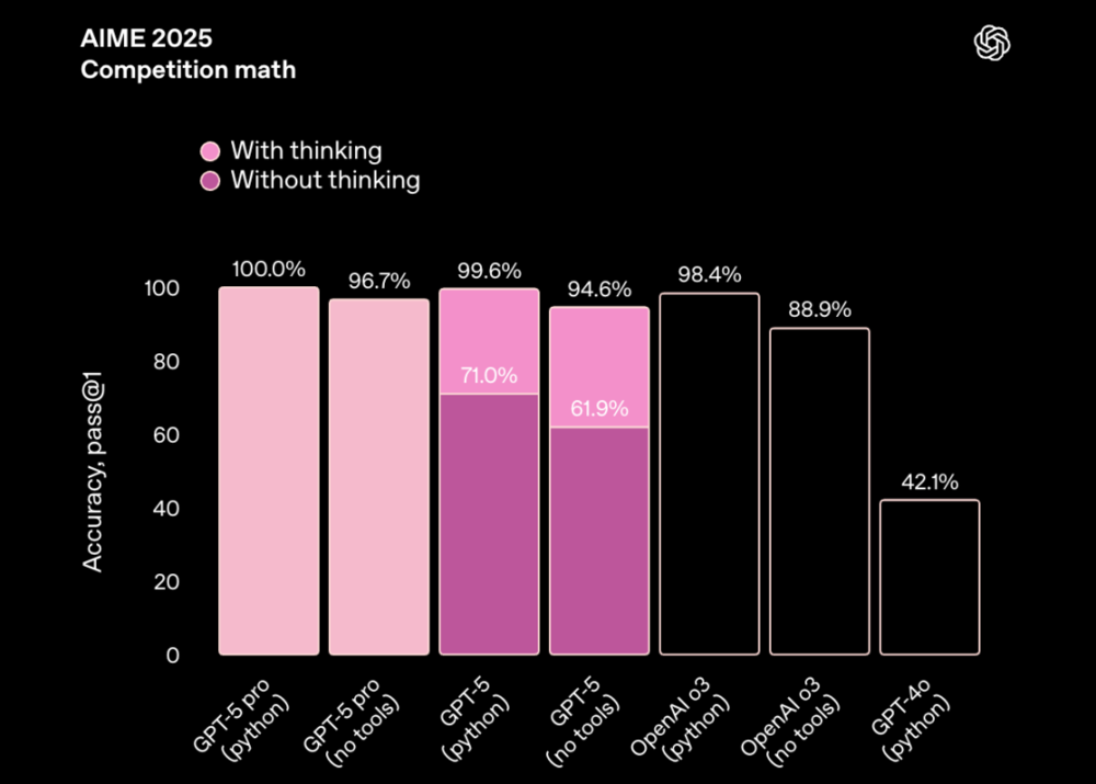 最让人吸睛的,还是GPT-5在AIME 2025的表现,直接拿下满分的成绩。