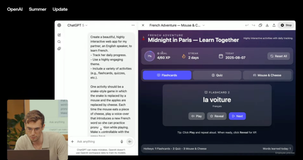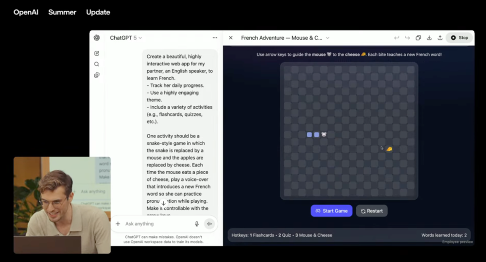 不过在直播的现场演示过程中,GPT-5还是有不少惊艳的表现在身上的。