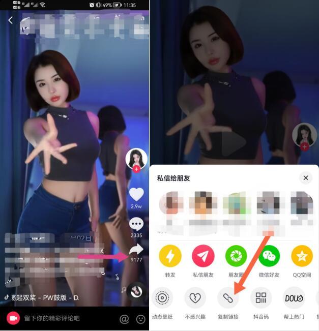 第二步:以抖音视频为例,首先打开抖音复制链接。