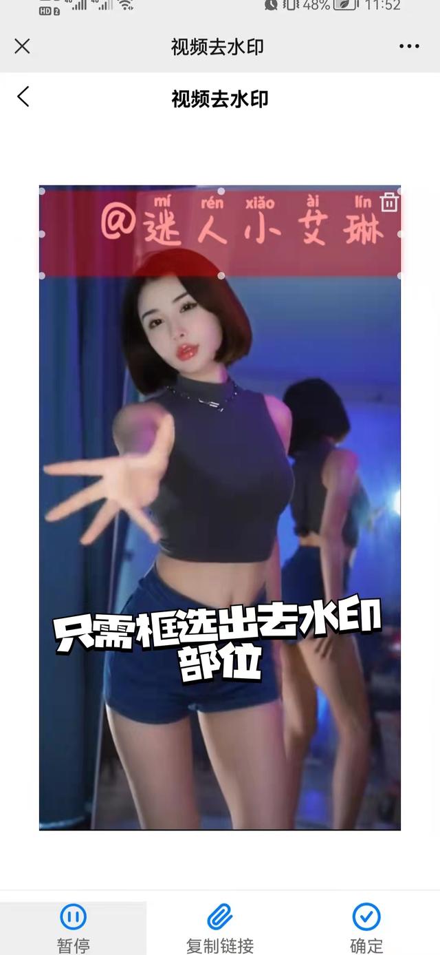 第三步:点开视频去水印栏目,并将抖音链接粘贴解析,然后选择水印部位,选择完成后点击“开始去水印”